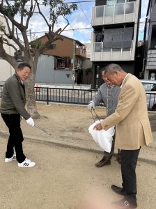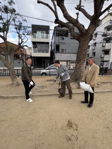 社会貢献活動の一環として、事務所周辺から最寄りの公園までの清掃活動を行いました。